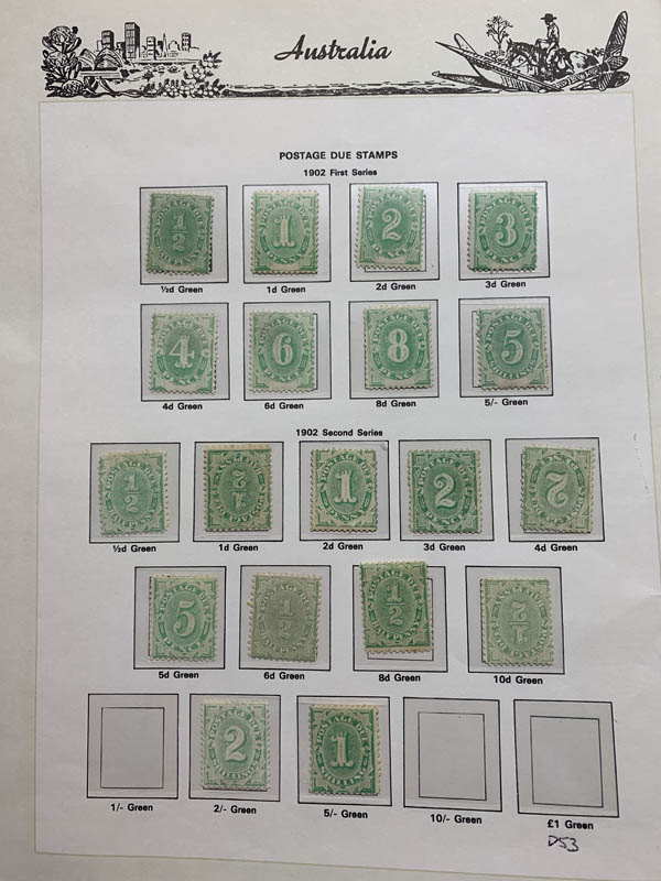 Lot 4![]() Australia, Postage Dues, 1902-1958, attractive mint collection, mounted on 5 hingeless album pages, with some duplication and varieties, generally Fine to Very Fine. SG £2,065 ($2,450). Estimate $250 - 350. |