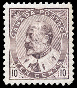 Canada, 1903, King Edward VII, 10¢ brown lilac (Scott 93), a gorgeous stamp, almost perfectly centered, expertly regummed, Extremely Fine to Superb. Scott $400 for o.g.
