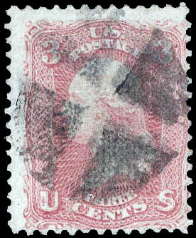 1867, 3¢ Washington, rose, C. grill (Scott 83), excellent color, neat circle-of-wedges cancel, nearly Fine. Scott $1,150.