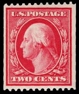 1910, 2¢ Washington, S.L. watermark, vertical coil (Scott 386), vibrant color and razor sharp impression, o.g., never hinged, Fine to Very Fine. Scott $260.