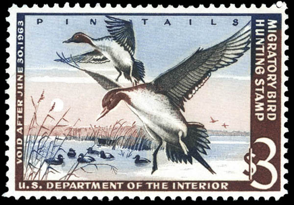 Hunting Permit, 1962, $3 Pintail Drakes (Scott RW29), o.g., never hinged, Fine to Very Fine. Scott $110.