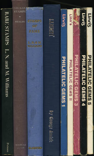Lot 438![]() Rare Stamps, including Rare Stamps, by L.N. & M. Williams, 1967, hard bound, well illustrated in color and black & white, 120 pages. Also 8 other titles on rare stamps, including Stamps of Fame, by L.N. & M Williams, 1949; Fabulous Stamps by John W. Nicklin, 1939; Jenny!, by George Amick; and 5 titles in Linn's Philatelic Gems series. In relatively decent condition overall. Shipping weight 7.9 lbs / 3.6 kilos. Estimate $50 - 75. |