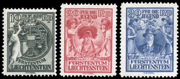 Liechtenstein, 1932, Child Welfare Fund complete (Scott B11-B13), o.g., never hinged, Very Fine. Scott $160. Michel 116-118. Zumstein 11-13.