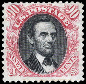 Lot 453![]() 1869 (1875 Re-issue), 90¢ Lincoln, carmine & black (Scott 132), part o.g.; gum stains along the bottom margin, otherwise Fine, with 2001 P.F. certificate, only 1356 sold. Scott $3,750. Estimate $800 - 1,200. |