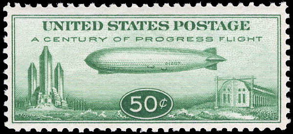 Airmail, 1933, 50¢ "Chicago" Zeppelin (Scott C18), o.g., never hinged, Very Fine, with 2018 P.S.E. certificate graded VF 80. Scott $75. SMQ $80.