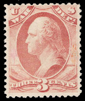 War Dept., 1873, 3¢ rose (Scott O85), o.g., never hinged, Fine. Scott $650.