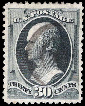 1873, 30¢ Hamilton, gray black, C.B.N.C. printing (Scott 165), outstandingly well centered and lightly canceled, light target cancel, Very Fine or better. Scott $150.