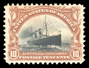 1901, Pan-American, 10¢ yellow brown & black (Scott 299), brilliant color, o.g., lightly hinged; some black ink offset on reverse, Fine to Very Fine.