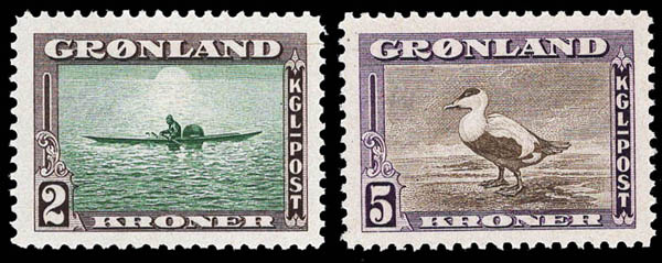 Greenland, 1945, Pictorials, 1øre to 5kr complete (Scott 10-18. Facit 10-18), o.g., lightly hinged, Very Fine. Scott $167.
