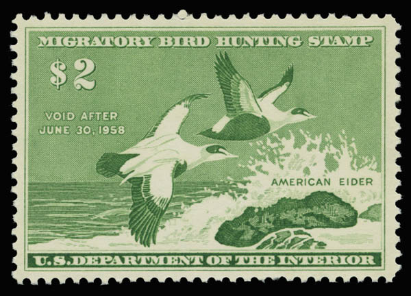 Hunting Permit, 1957, $2 American Eider (Scott RW24), o.g., never hinged, Extremely Fine.