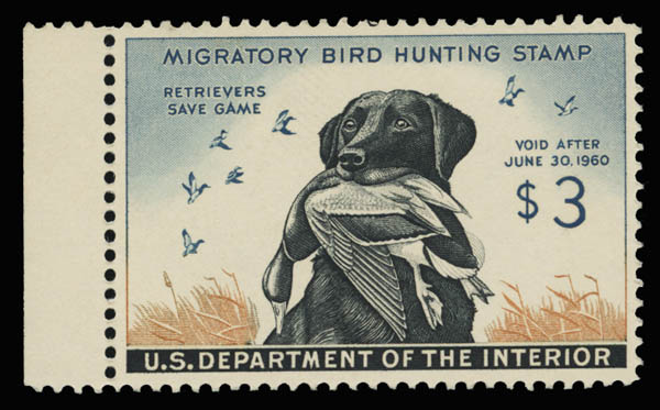 Hunting Permit, 1959, $3 Labrador Retriever (Scott RW26), o.g., never hinged, Extremely Fine.