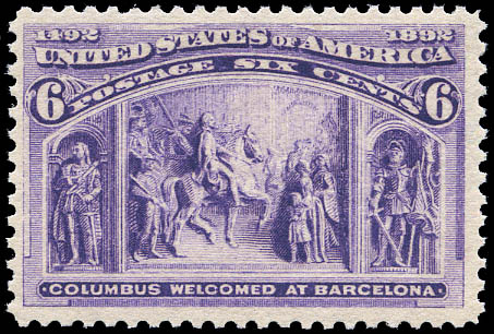 1893, 6¢ Columbian (Scott 235), o.g., never hinged, almost Very Fine. Scott $150.