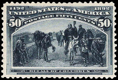 1893, 50¢ Columbian (Scott 240), nicely centered, regummed, Very Fine. Scott $200.