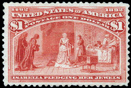 1893, $1 Columbian (Scott 241), unused without gum; thin at bottom left, Fine to Very Fine appearance. Scott $500.