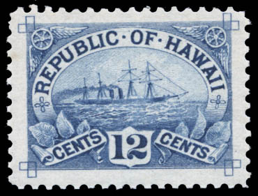 Hawaii, 1894, 12¢ blue (Scott 78), beautifully well centered, o.g., never hinged, Extremely Fine to Superb. Scott $43.