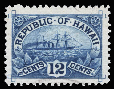 Hawaii, 1894, 12¢ blue (Scott 78), perfectly centered within huge margins, barest trace of a cancel, Superb. Scott $20.