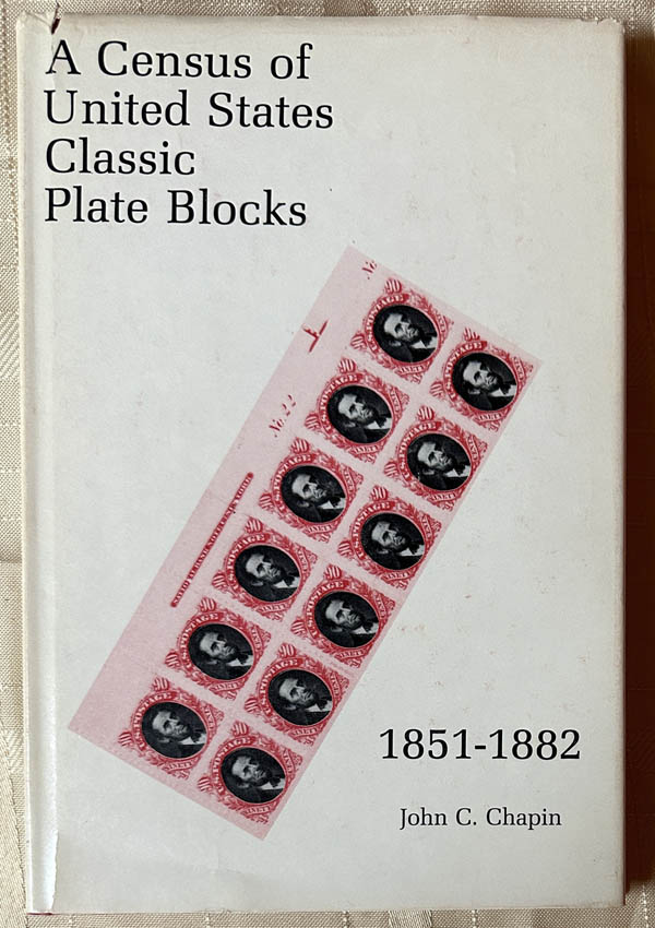 Chapin, John C., Census of U.S. Classic Plate Blocks, 1851-82, 1982, soft bound, 116 pages.