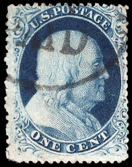 Lot 6 o 1857, 1¢ Franklin, blue, type IIIa (Scott 22), position 72L4, PAID in circle cancel; faults including a repaired small tear, otherwise about Fine, with 2025 P.F. certificate. Scott $500. Estimate $100 - 150. |