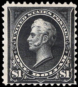 1895, $1 Perry, black, type I, D.L. watermark (Scott 276), o.g., hinged, about Fine. Scott $600.