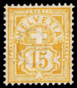 Switzerland, 1882, Numeral, 15c yellow, white paper (Scott 81. Michel 49. Zumstein 57), disturbed o.g., Fine to Very Fine. Scott $370.