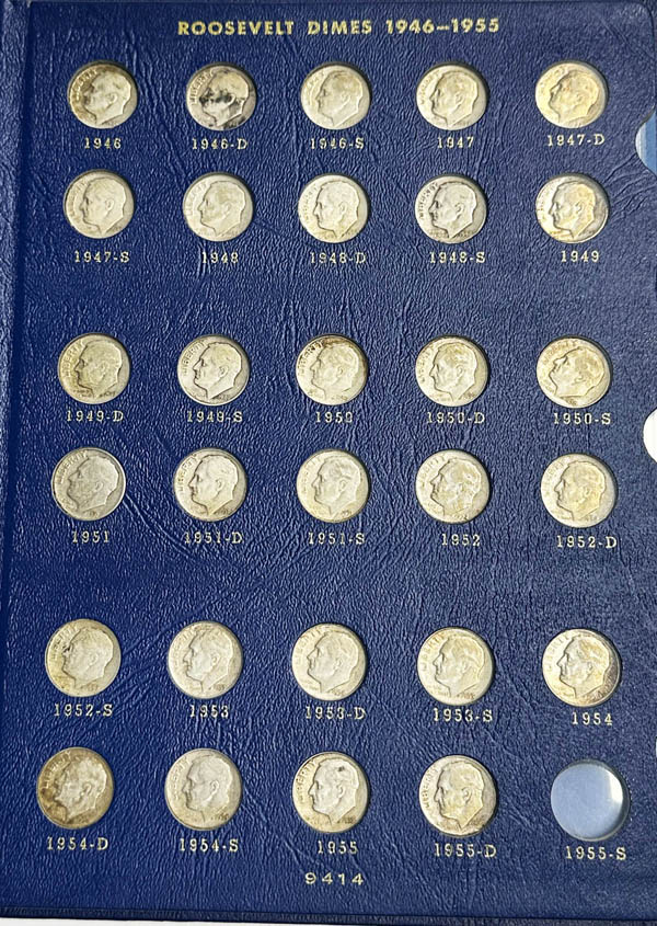 Lot 618 1946-84, Roosevelt Dimes. Uncirculated, approximately 190 dimes in total with fifty of them being 1962 (all silver and EF); most of the dimes are pre 1964 but a few are the later clad coins. Total weight is approximately 475 grams. Estimate $300 - 400. |