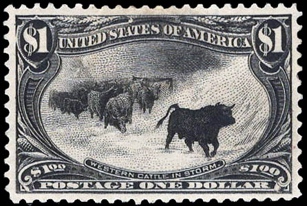 1898, $1 Trans-Miss. (Scott 292), beautifully well centered, o.g.; a toned hinge remnant, otherwise Extremely Fine, a gorgeous appearing stamp. Scott $1,200.