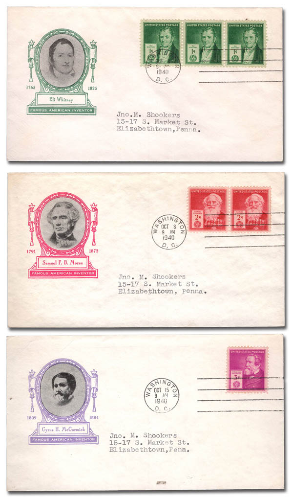 1940, Famous Americans complete (Scott 859-893), 35 unique covers, each with matching presidential cachets; only a few imaged on the website, overall Fine to Very Fine. Scott $200 ++.