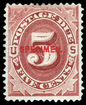 Postage Due, 1884, 5¢ red brown, overprinted "Specimen" (Scott J18SD), very bright and fresh, o.g., hinge remnants, Fine. Scott $45.