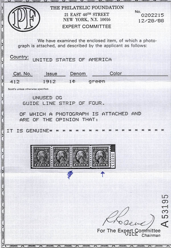 Lot 782![]() ![]() 1912, 1¢ Washington, green, S.L. watermark, horizontal coil, perf. 12 vertically (Scott 412), this deserves to be graded - likely a 98! o.g., never hinged, Extremely Fine, with photocopy of 1988 P.F. certificate for strip, this being the far right stamp. Scott $55. Estimate $75 - 100. |