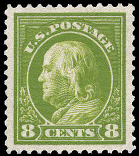 Lot 784![]() 1912, 8¢ Franklin, pale olive green, S.L. watermark, perf. 12 (Scott 414), o.g., lightly hinged, Extremely Fine to Superb, with 2024 P.F. certificate graded XF-SUP 95. Scott $40. SMQ $125. Scott Stamp Values $115. Estimate $75 - 100. |