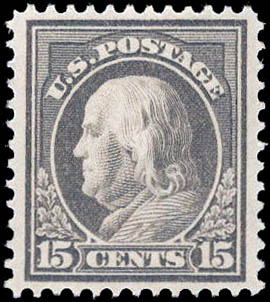 1912, 15¢ Franklin, gray, S.L. watermark, perf. 12 (Scott 418), o.g., lightly hinged, Very Fine to Extremely Fine. Scott $80.