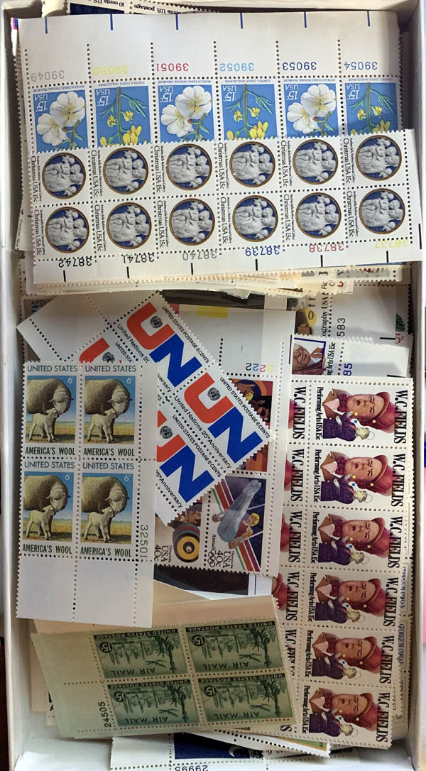 Lot 789![]() ![]() Face value postage, 1950's-80's, plate blocks, mint lot of blocks from 1¢-35¢, some duplication but much variety with overwhelming majority being n.h. commemoratives, maybe a fault or so in here but overall very clean; face value is $260.66. Estimate $150 - 200. |