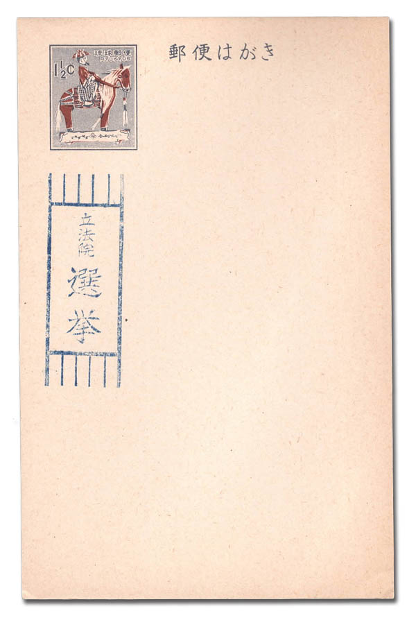 Ryukyus, Election Postal Card, 1966, 1½¢ 3rd District Special Election (Scott UZE22), pristine mint, Very Fine.