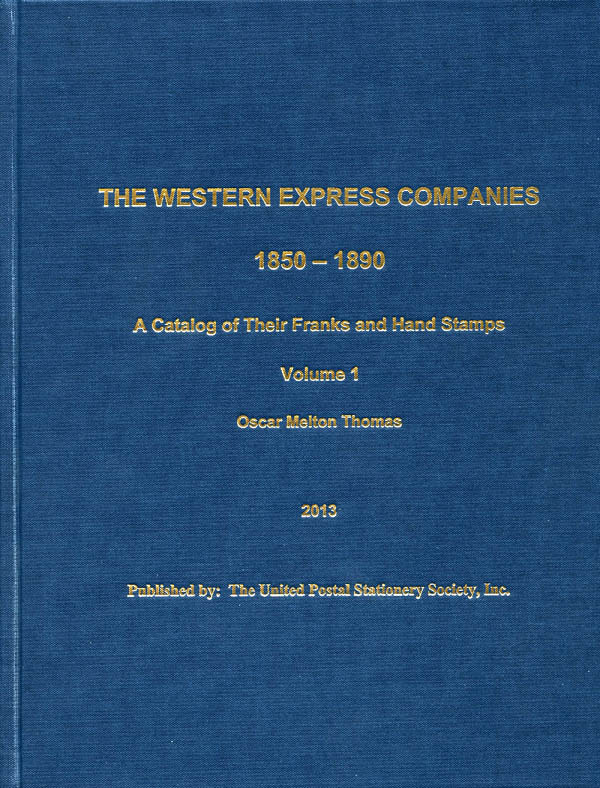 Lot 803![]() Thomas, Oscar Melton, The Western Express Companies, 1850-1890, A Catalog of Their Franks and Hand Stamps, 2013, 2 volumes, hard bound, 925 pages + a CD of "The Western Cover Library 2013", beautifully and profusely illustrated in color, a major new reference on the subject. Like new. Shipping weight 7.6 lbs / 3.5 kilos. Estimate $60 - 80 Still in print and available from the U.P.S.S. for $150 + shipping . |