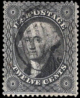 1857, 12¢ Washington, black, plate I (Scott 36), lightly struck grid cancel, Fine. Scott $325.