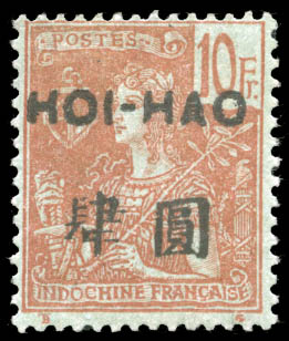 China: French Offices in Hoi Hao, 1906, Peace & Commerce, 10f orange brown on green (Scott 48), o.g., lightly hinged, Fine. Scott $150. Maury 48.