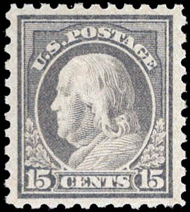 1916, 15¢ Franklin, gray, unwatermarked, perf. 10 (Scott 475), o.g., lightly hinged, Very Fine to Extremely Fine. Scott $170.