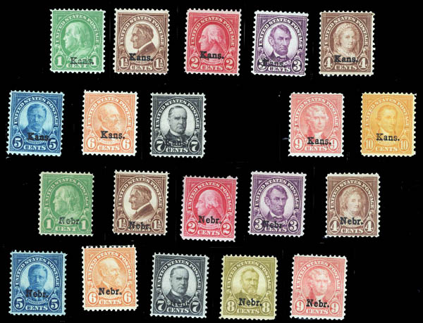 1929, Kans.-Nebr., 1¢ to 10¢ complete (Scott 658-679), set of 22, o.g., most are lightly hinged and even a few are n.h., Fine to Very Fine. Scott $482+.