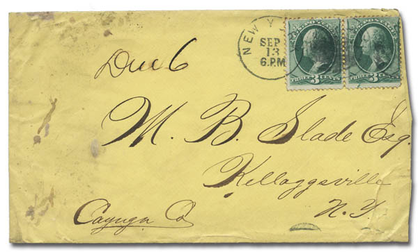 Lot 845![]() Postal history miscellany, 1879-1939, 12 different covers, including a 3¢ Bank Note with major plate crack, couple ad covers from the 1890's, a 1924 incoming letter from Pago, Pago, Samoa, a 1926 registered airmail cover, #629 FDC, National Stamp Week 1935 with 14 different definitives, a goodwill Coronation Flight to London in 1937 and a 1939 United Air Lines flight log. Quite a pot-pourri, generally Fine to Very Fine but not always. Estimate $150 - 200. |