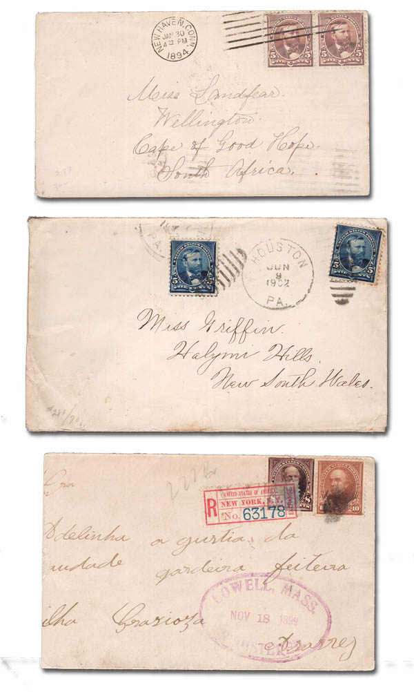 Lot 846![]() Foreign Mail, 1894-1920, incoming and outgoing group, 11 covers and postcards mainly to interesting destinations from the U.S., with one incoming from Winnepeg Canada canceled by oval "Branch Dead Letter", other destinations include Cape of Good Hope, Denmark, England, India, Japan, New South Wales, Portugal, Russian Poland and Yugoslavia. Nice items retailing $50 to $300 each, around $1300 retail total, generally Fine to Very Fine. Estimate $250 - 350. |