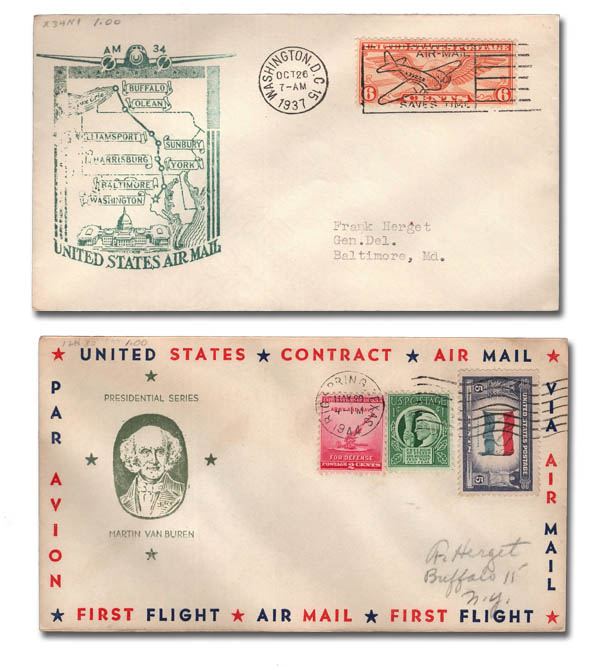 Lot 847![]() First flight and other airmail covers, 1922-40, small group, includes 9 nice first flight covers from the 1920's-30's with neat cachets, plus some misc. including C.A.M. etc, generally Fine to Very Fine. Estimate $120 - 150. |