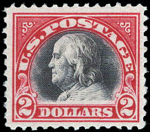 1920, $2 Franklin, carmine & black (Scott 547), o.g., very lightly hinged, Very Fine or better. Scott $130.