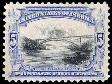 1901, 5¢ Pan-American (Scott 297), a magnificent stamp, with essentially perfect centering and brilliant fresh color, o.g., hinged, Extremely Fine to Superb. Scott $75.