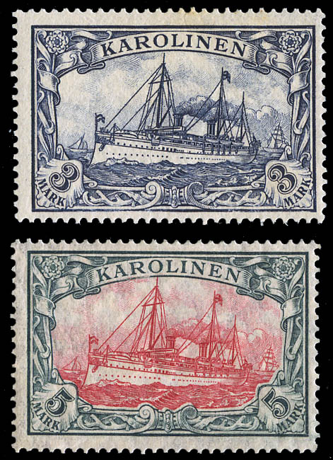 German Colonies: Caroline Islands, 1901, Kaiser's Yacht, 3pf to 5m complete (Michel 7-19. Scott 7-19), set of 13, Feinst. Michel €250 ($270). Scott $191.