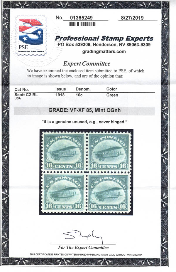 Airmail, 1918, 16¢ Jenny (Scott C2), VF-XF 85. Scott $480.