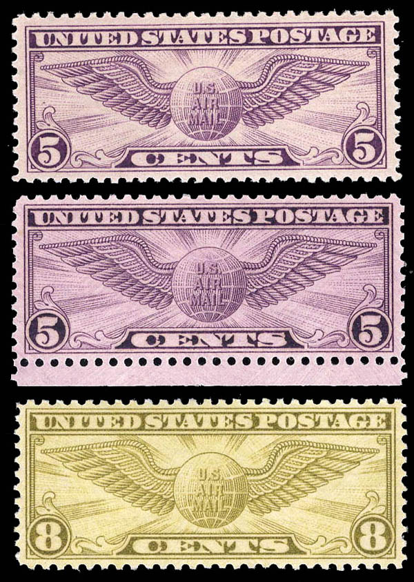 Airmail, 1930-32, 5¢ Winged Globe, both flat plate and rotary press printings; and 8¢ Winged Globe (Scott C12, C16, C17), XF 90. Scott $26. SMQ $180.