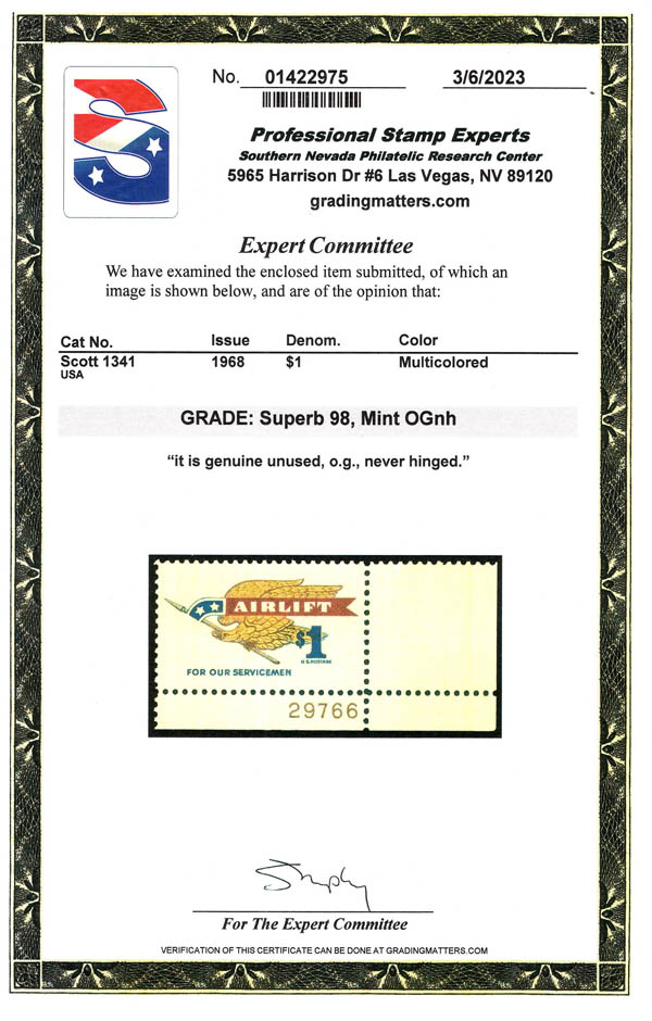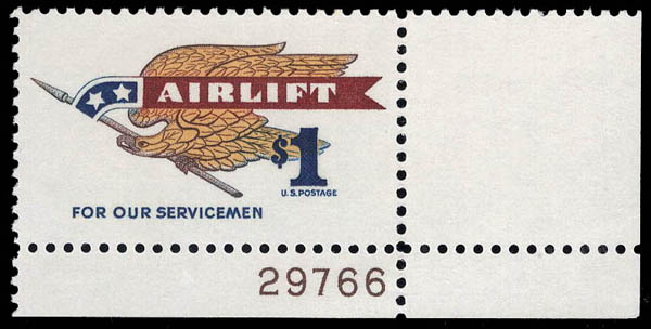 1968, $1 Airlift (Scott 1341), Luxus. SMQ $75.