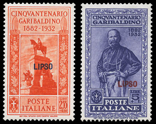 Italian Occupation of the Aegean Islands: Lisso, 1932, Garibaldi issue complete (Scott 17-26. Sassone 17-26 (S. 62)), set of 10, Feinst. Scott $190. Sassone €260 ($280).