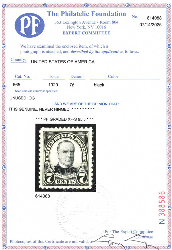 1929, 7¢ Kans. (Scott 665), XF-SUP 95 J. Scott $50. SMQ $575.