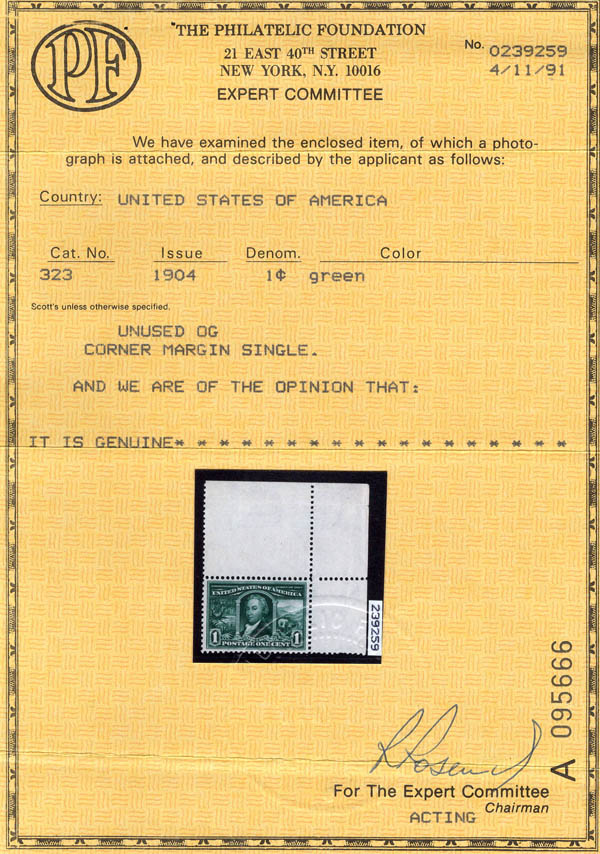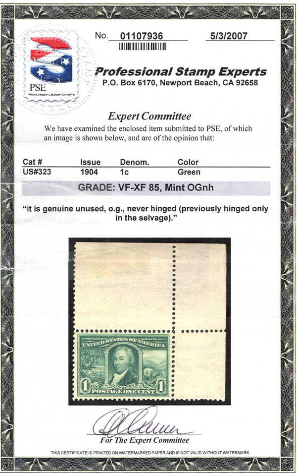 1904, 1¢ Louisiana Purchase (Scott 323), VF-XF 85. Scott $60. SMQ $75.